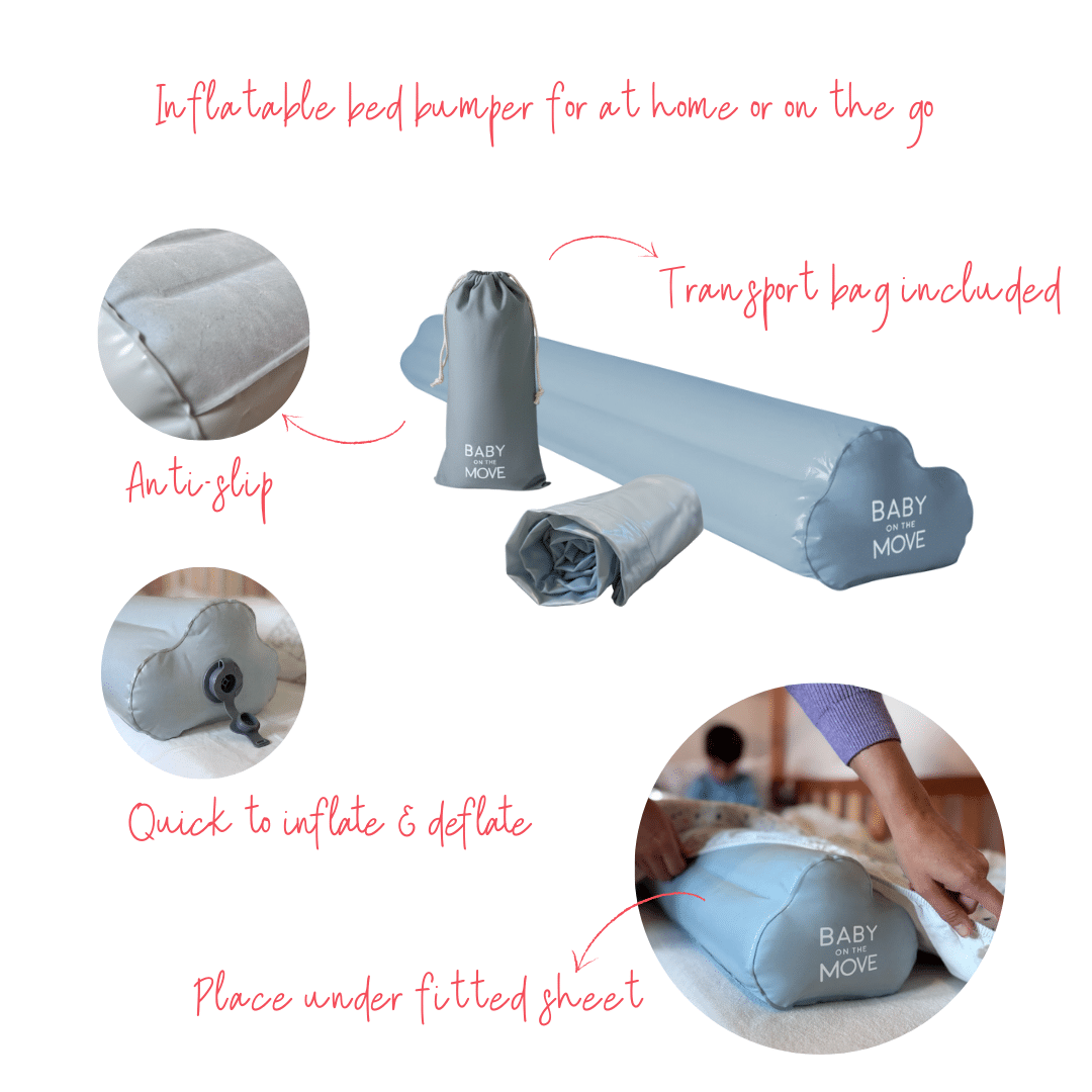 Our inflatable Bed Guard is a soft, cloud-shaped bed bumper for little sleepers. Lightweight and compact, it’s perfect for travel, sleepovers, and naps away from home. Quick to inflate and deflate, it slides under the fitted sheet along the mattress edge to create a safe and cozy sleep space. The grippy, non-slip base helps keep it securely in place. For peaceful sleep, anytime, anywhere.