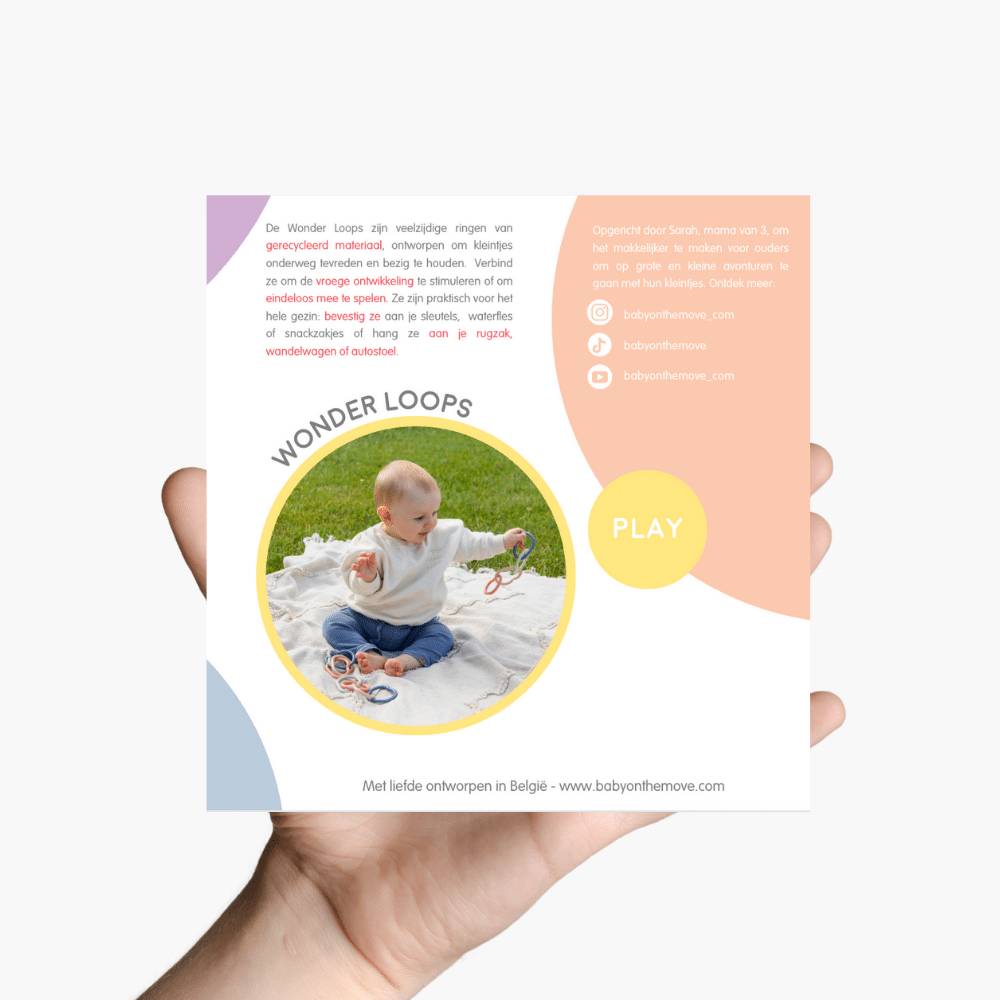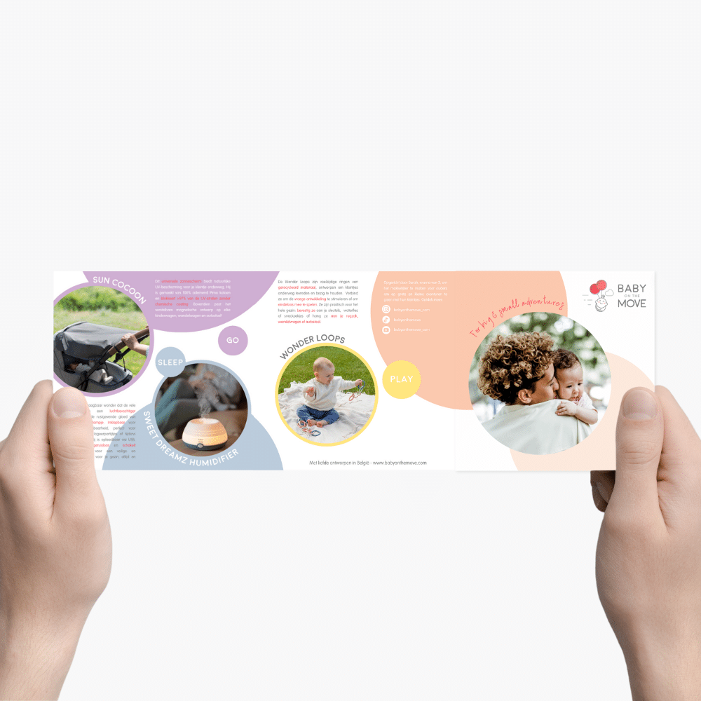 Our brand brochure is ideal for introducing our brand to your beloved customers. You can easily add it to packages, give it along at birth list appointments, or put it in your store.
