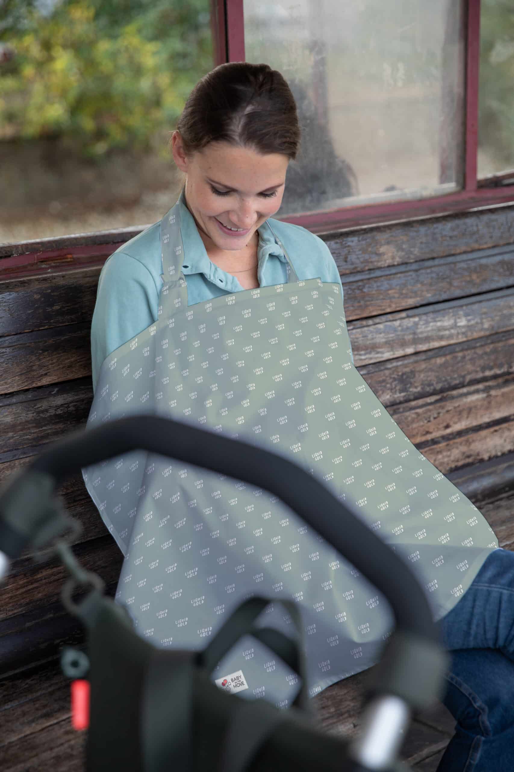 Our breastfeeding cover comes with a convenient washing bag and a matching on-the-go bag so that you can easily take your Baby on the Move Nursing Cocoon with you.