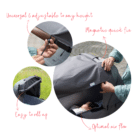 - Quick fix system: easy to install with magnets in the flaps and elastics to adapt to any length of the stroller’s handle.