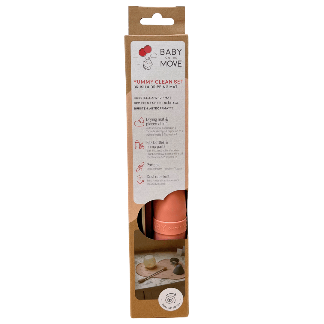 Our Baby on the Move Yummy Clean Set is the perfect solution for cleaning and drying bottles, teats, pump parts and all of your Yummy products wherever you are.
