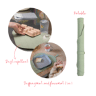 The raised edges ensure that any spilled water stays on the mat. Roll up the mat for easy storage and transportation, or use the handy strap to hang it up to dry. It fits effortlessly in any diaper bag, kitchen drawer or suitcase, so you’re always prepared, whatever the situation. Plus it is made of dust-repellent silicone, which prevents annoying hairs or other dirt from sticking to the mat and keeps it clean.