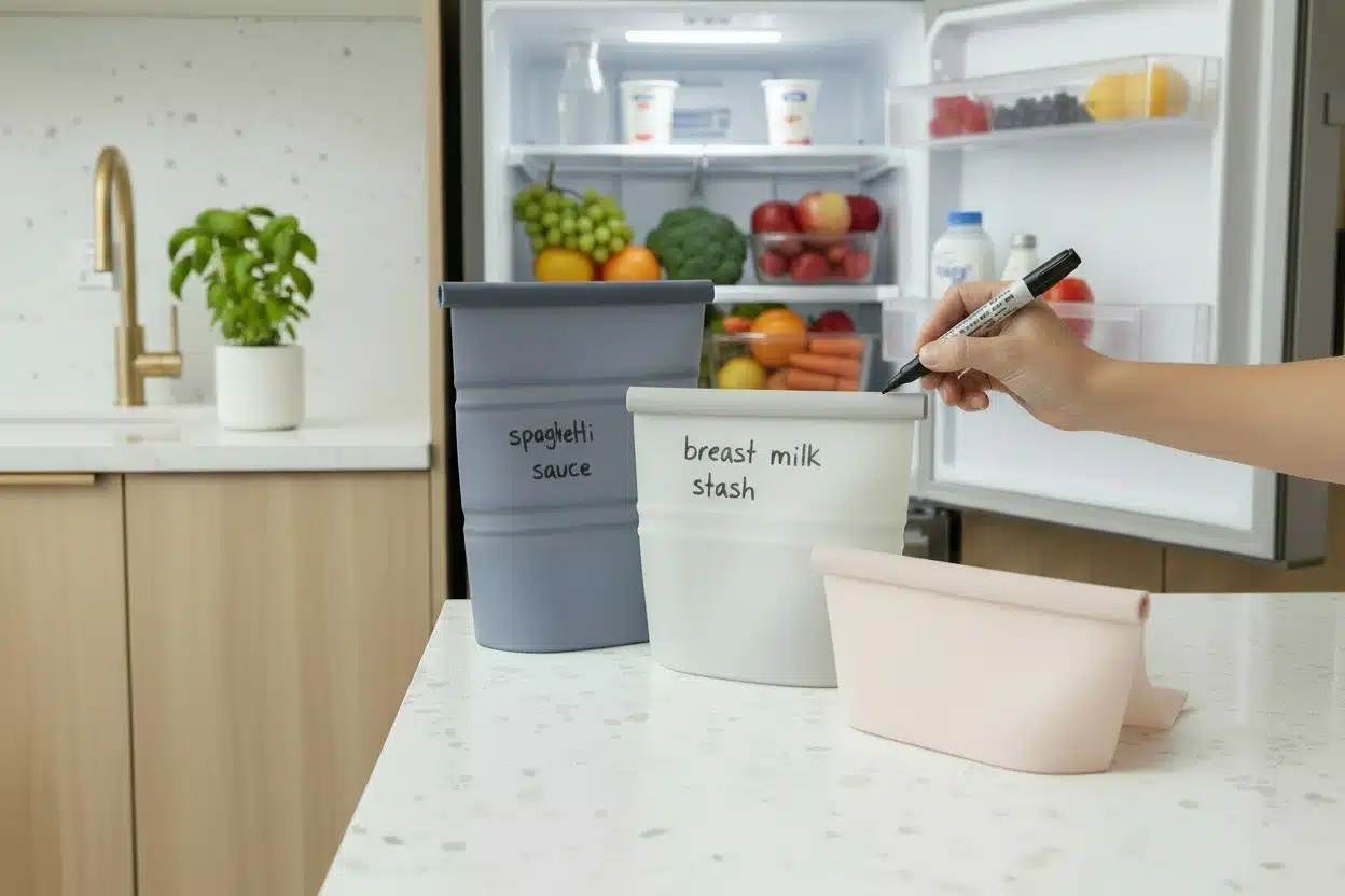 Our Yummy Storage bag makes breast milk storage easy. Transfer frozen cubes straight from the Yummy Tray (or any freezer tray) to build your long-term supply. With three adjustable closure levels, you can start small and expand as your stash grows. This keeps your freezer hygienic, practical, and tidy. Also great for fruit and veggie cubes, sauces, and more. Durable, reusable, and made to grow with your family.